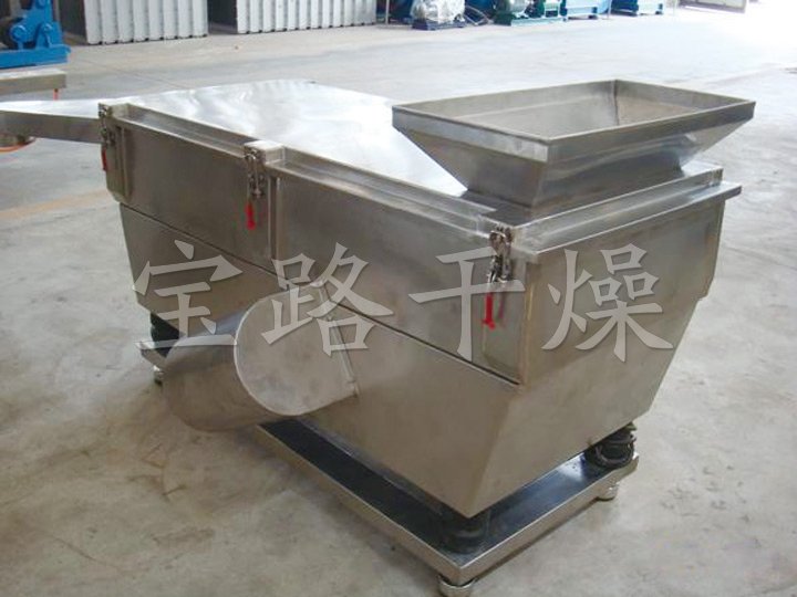 該機是由進出料口篩網篩箱、振動源及減震器三大部件構成。機座與篩箱連接有4-6組軟橡膠減震器上下固定,開機即產生離心力,振幅有偏心塊、減震器對應控制,從而達到需要的^佳工作性能,使物料有一個拋震和松動的過篩過程。廣泛適用于制藥、食品、化工、冶金、電子等行業篩選的理想設備。
