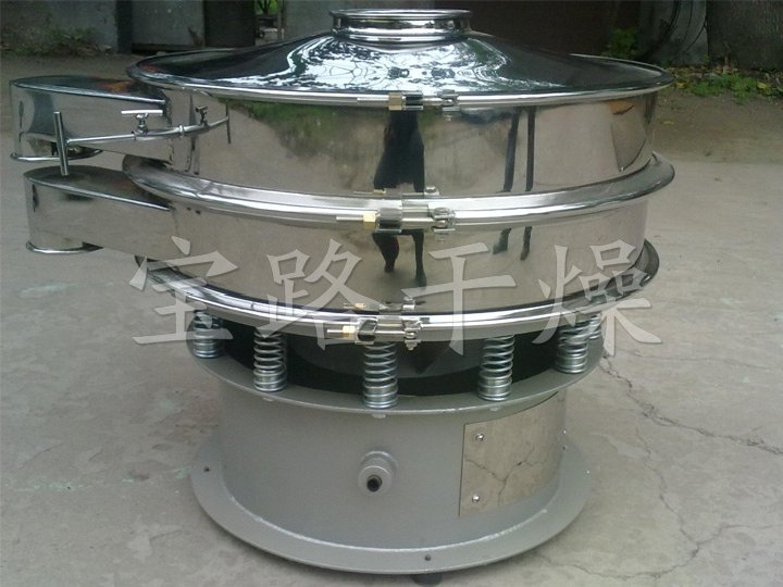 本機(jī)由料斗、振蕩室、聯(lián)軸器、電機(jī)組成。振蕩室內(nèi)有偏心輪、橡膠軟件、主軸、軸承等組成。可調(diào)節(jié)的偏心重錘經(jīng)馬達(dá)驅(qū)動(dòng)傳達(dá)到主軸中心線,在不平衡的狀態(tài)下產(chǎn)生離心力,使物料強(qiáng)度改變,在篩內(nèi)形成軌道旋渦。重錘調(diào)節(jié)器的振幅大小可根據(jù)不同物料和篩網(wǎng)進(jìn)行調(diào)節(jié)。整機(jī)結(jié)構(gòu)緊密、體積小、不揚(yáng)塵、噪音低、質(zhì)量高、能耗低、移動(dòng)維修方便。